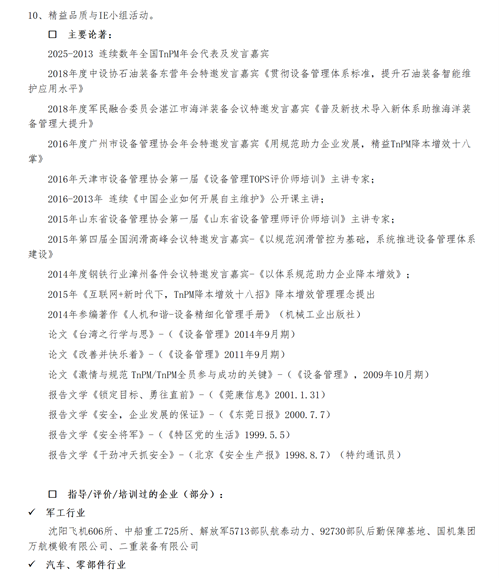 TPM設備管理、設備維護、自主保養(yǎng)、自主改善等相關咨詢