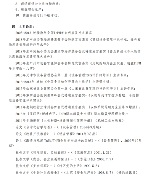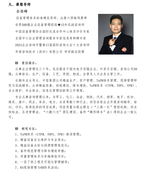 TPM設(shè)備管理、設(shè)備維護(hù)、自主保養(yǎng)、自主改善等相關(guān)咨詢