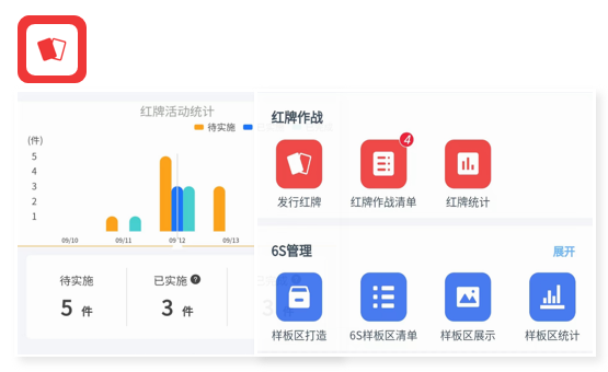 支持樣板區(qū)打造、6S基準(zhǔn)卡、紅牌作戰(zhàn)、維持管理等多種活動(dòng)