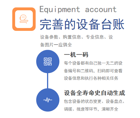 包含設(shè)備臺(tái)賬、設(shè)備BOM、設(shè)備盤點(diǎn)、調(diào)撥、報(bào)廢等功能,覆蓋設(shè)備全生命周期