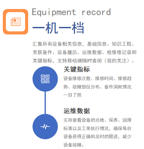 包含檢維修記錄、設(shè)備履歷、運(yùn)維數(shù)據(jù)、關(guān)鍵指標(biāo)、知識(shí)工程和關(guān)聯(lián)備件功能,數(shù)據(jù)更全面