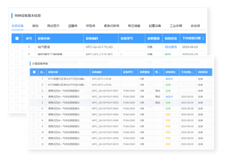 特種和計(jì)量設(shè)備有單獨(dú)的臺(tái)賬,更有效率的進(jìn)行設(shè)備管理,并可進(jìn)行分類管理