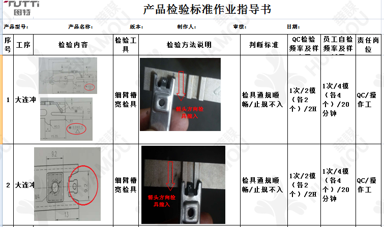 2: 實施“三檢”梳理檢驗標準(檢驗內容,標準,方法,記錄,標識,樣板,技能),實施自檢,互檢,全職檢。