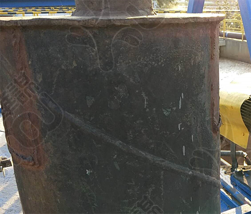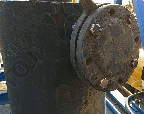在負壓罐側(cè)面加一個人孔,用法蘭封閉,進入負壓罐的樹葉會堆積在人孔處,刮泥機堵塞時只需將法蘭取掉,從人孔處將樹葉掏出即可