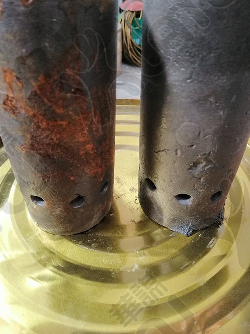 更換雙層風帽(φ8mm×12)使排渣口給風分布空間大,加大給風量,流態(tài)好,不留死角,不易結(jié)焦。