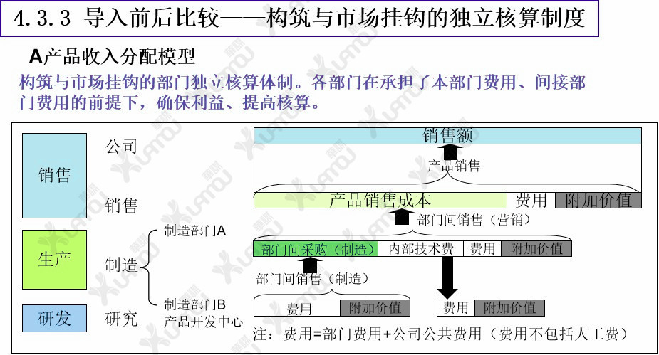 確立與市場(chǎng)掛鉤的部門(mén)核算制度公司經(jīng)營(yíng)的原理和原則是“追求銷(xiāo)售額最大化和經(jīng)費(fèi)最小化”,把組織劃分成小的單元,采取能夠及時(shí)應(yīng)對(duì)市場(chǎng)變化的部門(mén)核算管理。 -